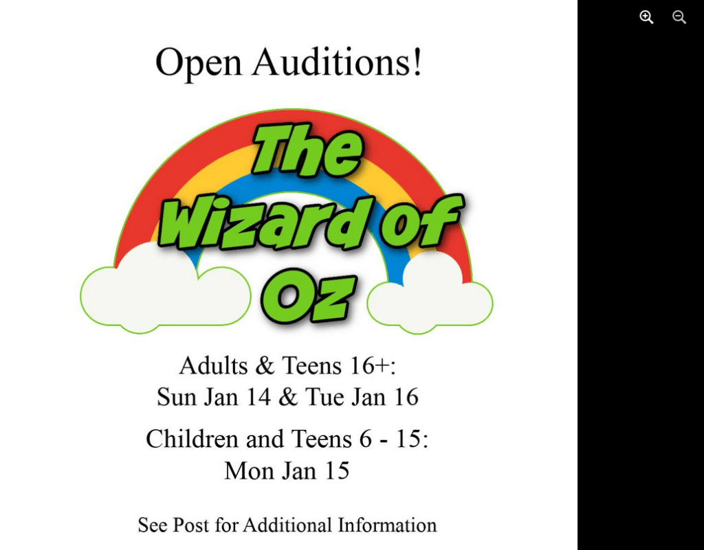 Clear Creek Community Theatre will hold open auditions for “The Wizard of Oz” (RSC Version) at the following times: